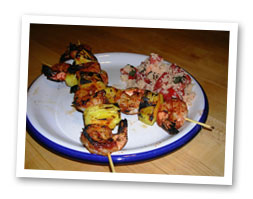 1. Trim and quarter, length wise, 1 medium ripe pineapple. Remove the core from each quarter and brush lightly with olive oil.