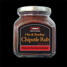 Hot & Smokey Chipotle Rub I have always loved the flavors of South Western cooking, such as smoked jalapenos, cilantro and citrus. Doug’s Hot and Smokey Chipotle rub blends these flavors together along with the sweetness of brown sugar to balance the heat. This rub is great on beef, seafood, pork and poultry. |